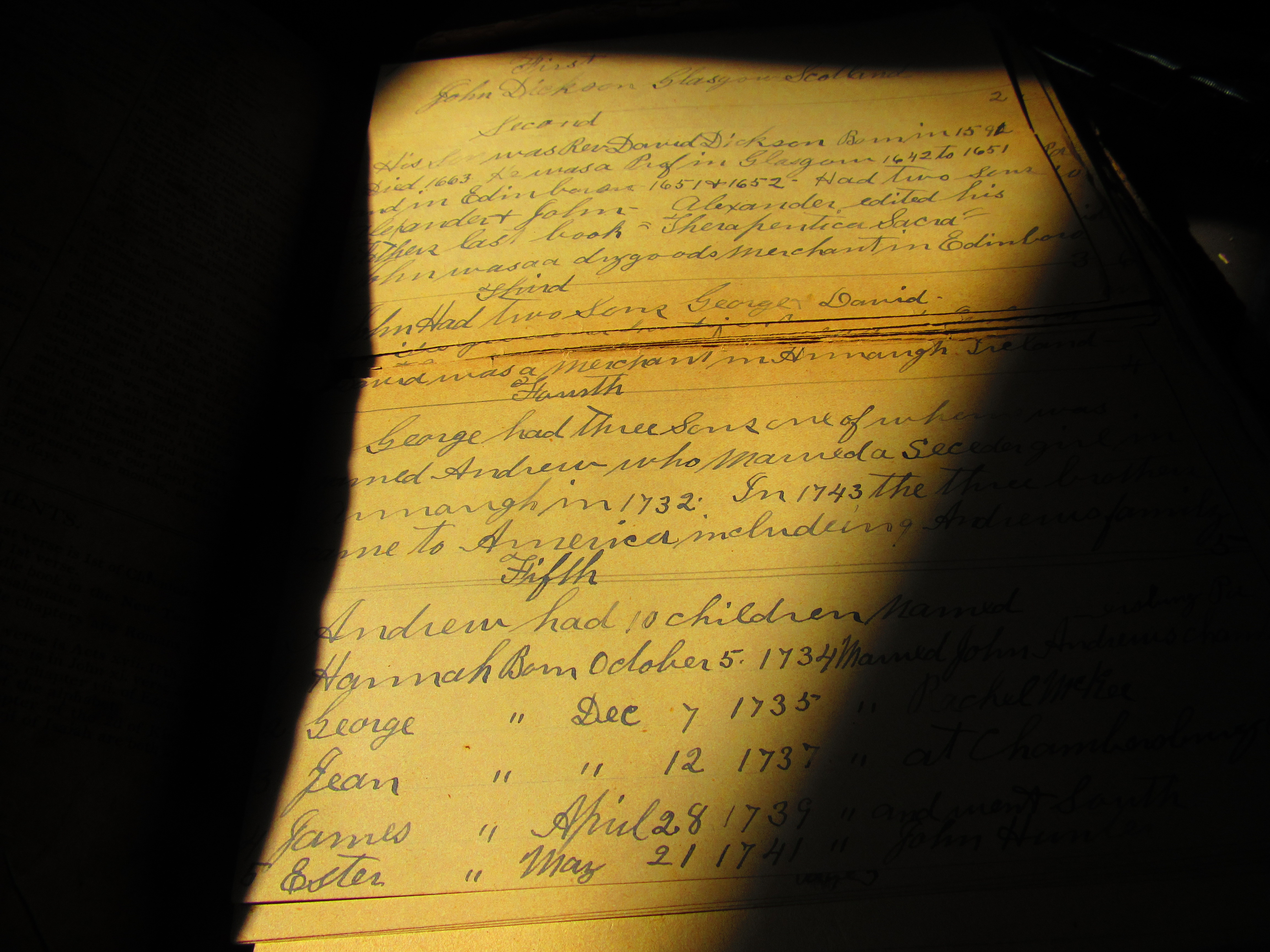 Fast-forward to the week of November 17th, 2021, and the days that followed. I was emotionally numb and couldn’t believe my grandmother was gone just like that, in the blink of an eye. She hadn’t even gotten to see my book published yet, which was something she was excited about. It was Thanksgiving break and I was trying to find something to do to keep my mind off of things. That was when my mom brought home an ancient family bible that was passed down through many generations on my grandma’s side of the family. Looking at it sent shivers down my spine. This thing looked like something Sam and Dean Winchester would read out of and it was truly terrifying. The bible was wrapped in an old, brown paper sack and bound in an ancient string. It looked like something that would put a curse on us if opened, yet curiosity got to us and we opened it anyway. It was from the 1800s and the binding was old leather wrapped around wood boards, not like the pressed cardboard of today’s hardbound books. There were newspaper clippings and ancient pictures of relatives I’d never seen before. Their eyes looked as though they would burn a hole through my pupils and into my soul. One of the most fascinating items was an old piece of parchment that had been handwritten with a quill and ink! It contained names of the people to whom the bible was for (the Dicksons). There were names of the children as well as the years of birth and death and who they had married. Some of these people even dated back to the Revolutionary War and beforehand. I was now fully intrigued to find out everything I could about my ancestors. I took some dramatic photographs of the bible and posted them below. These images themselves will likely curse all who gaze upon them (muahaha).